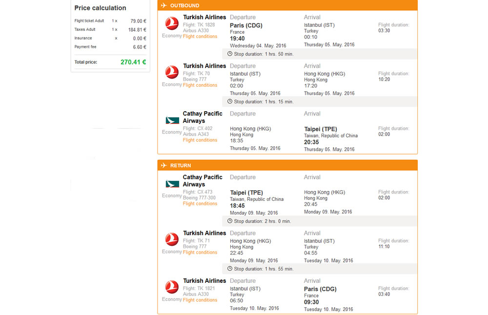 Cursele sunt operate de doua companii care ofera conditii excelente de zbor: Turkish Airlines si Cathay Pacific.