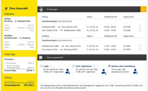 Pe tuifly.de, cel mai mic pret poate fi obtinut folosind un card Visa Electron: intr-un astfel de caz, nu sunt adaugate comisioane suplimentare.