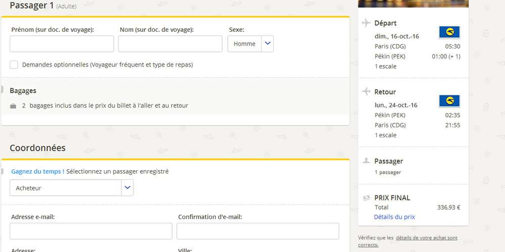 Pentru a cumpara biletele, mergi la kayak.fr, cauta zborurile, alege din lista de rezultate oferta cea mai ieftina si efectueaza rezervarea.