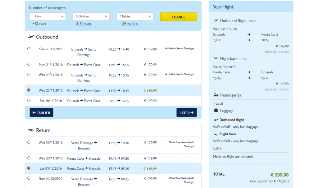 Pentru a cumpara biletele, mergi la jetairfly.com, selecteaza datele de calatorie si efectueaza rezervarea.